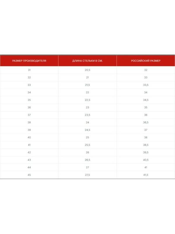 - Таблица размеров